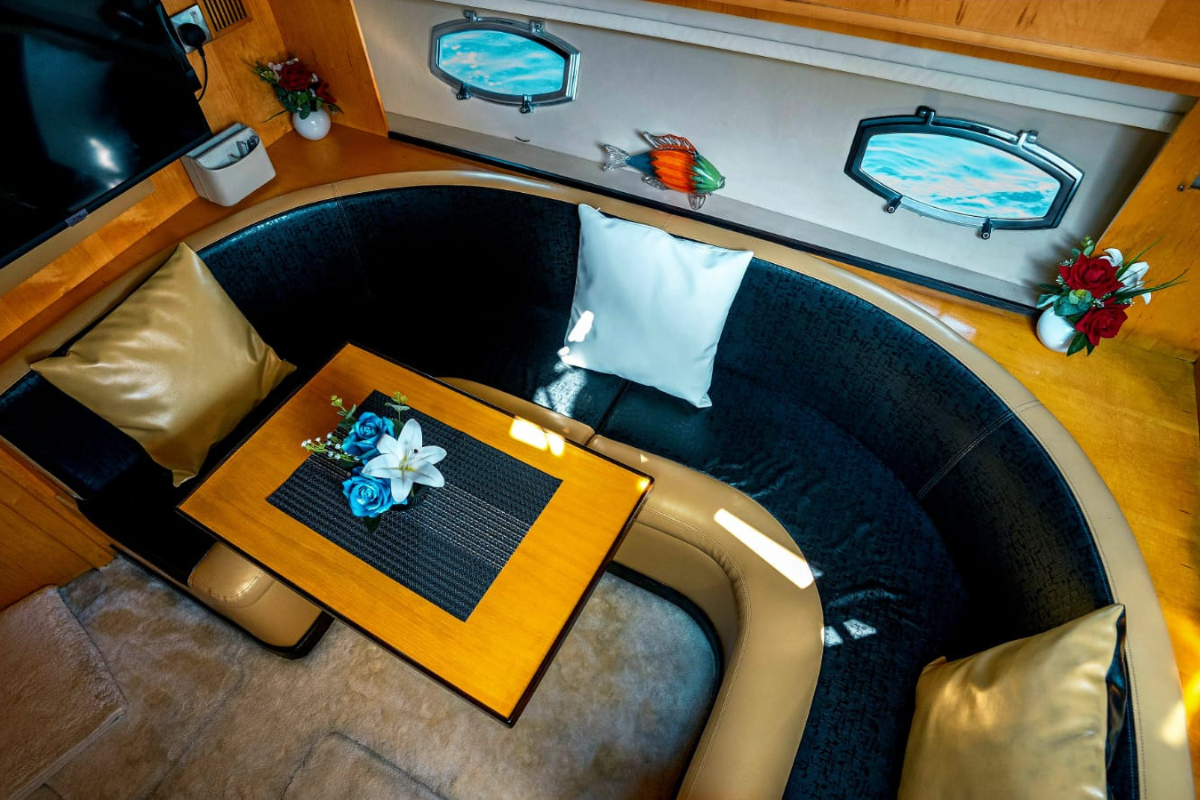 You’ll notice the setup immediately. Clean deck, shaded seating, built-in rod holders, and space that makes sense. Nothing fancy for the sake of it; just well thought out. This is what a real fishing yacht rental Dubai should feel like. The 36 ft Oryx yacht balances utility and comfort, giving you a smooth ride whether you’re cruising near the islands or heading out for a deep sea fishing trip.