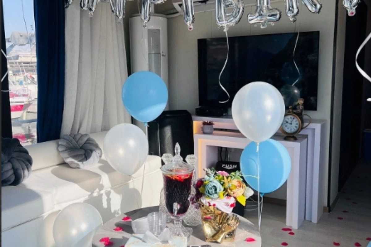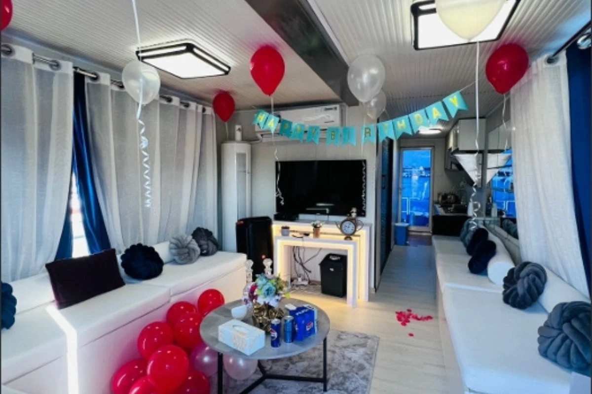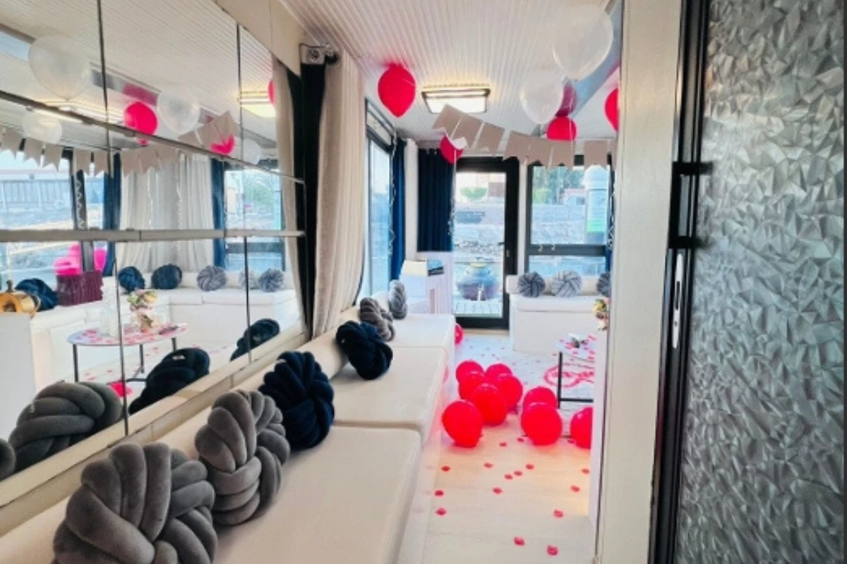 Large windows allow natural light and beautiful night views during evening cruises. The boat is suitable for private gatherings, casual celebrations, and peaceful sea trips.