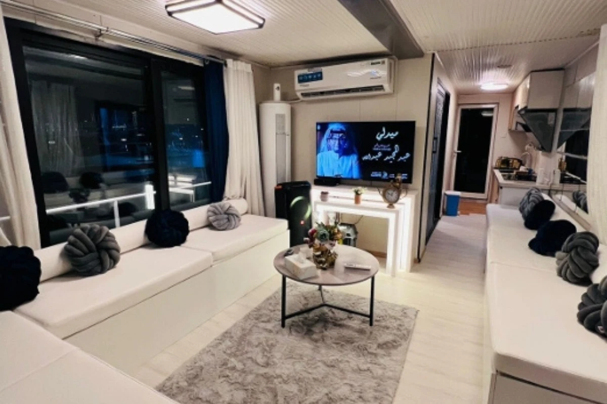 Diamond House Boat Haya offers a relaxing house boat rental experience in Abu Dhabi, perfect for small groups looking for privacy and comfort on the water. The modern design provides a cozy indoor space combined with outdoor seating areas.